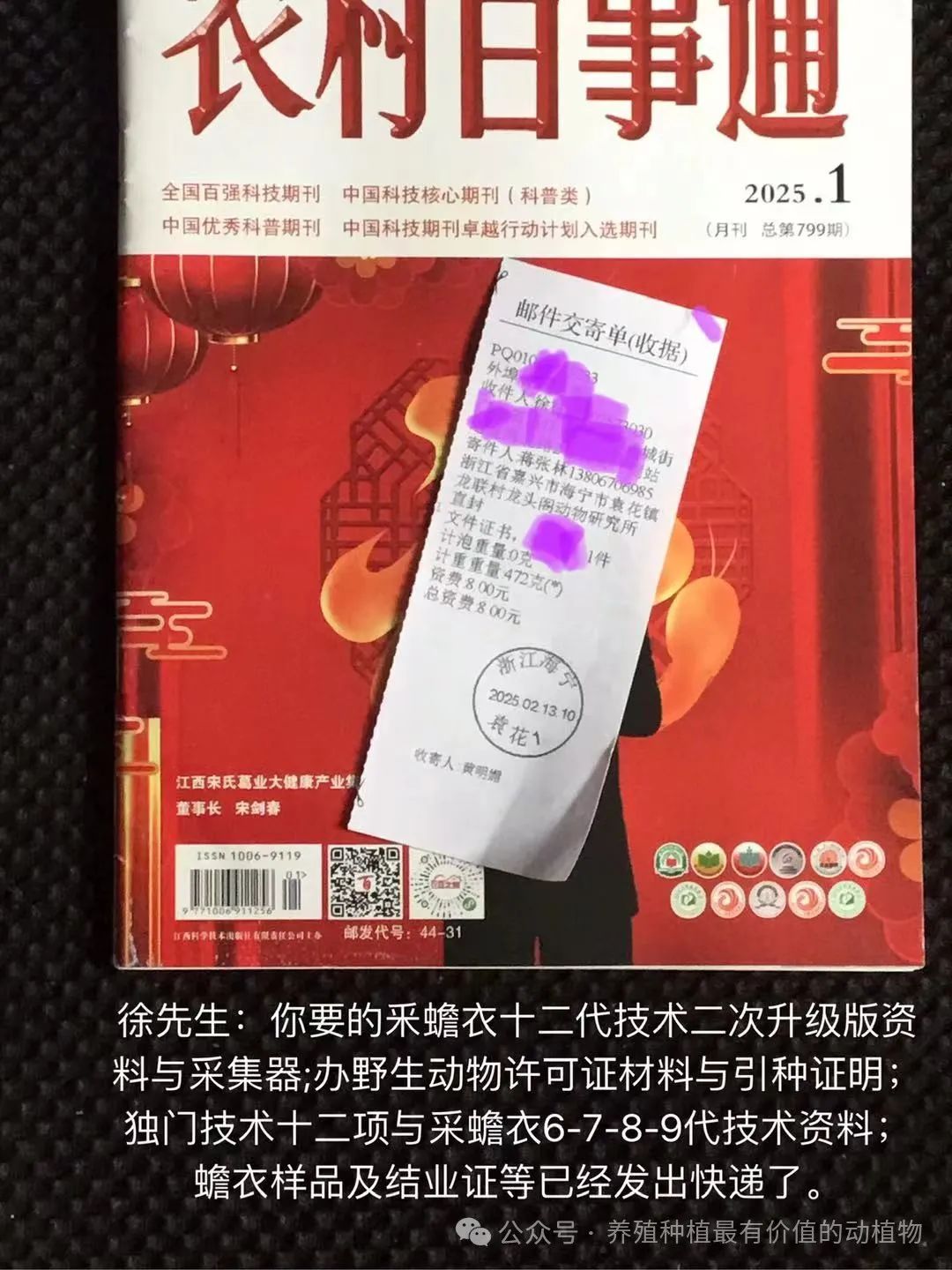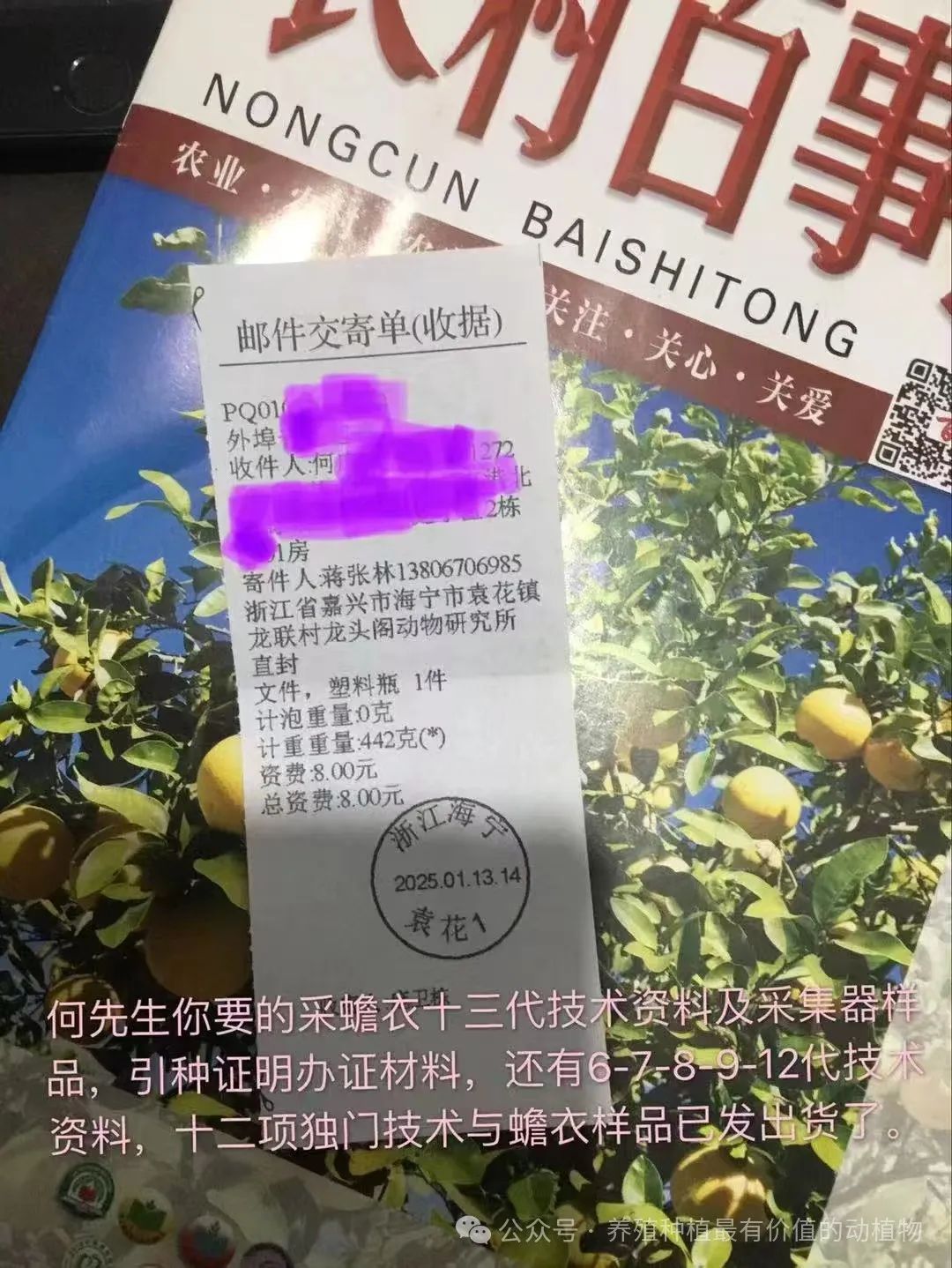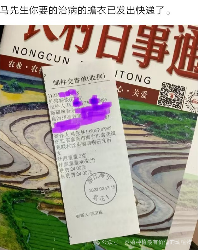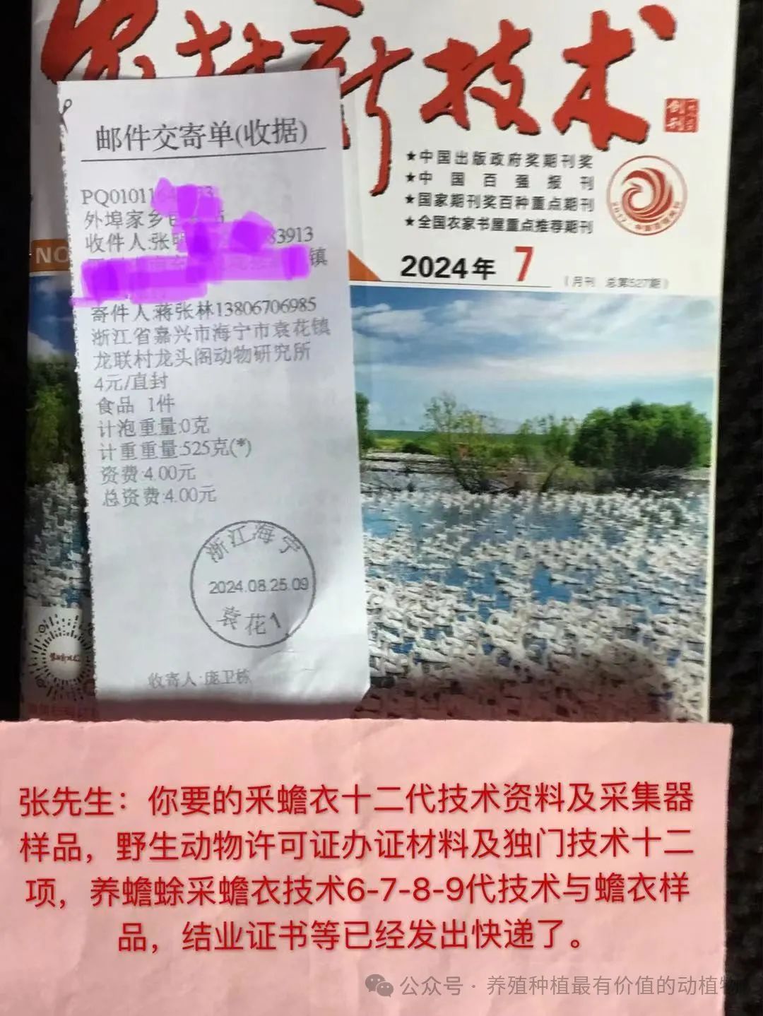 文章标题:78岁蒋张林收藏蟾蜍蟾衣《邮件交寄单》,新型集邮成名人 江浙蟾衣信息网 海宁市龙头阁两栖爬行动物研究所 所长蒋张林 微信电话同号:13375735389