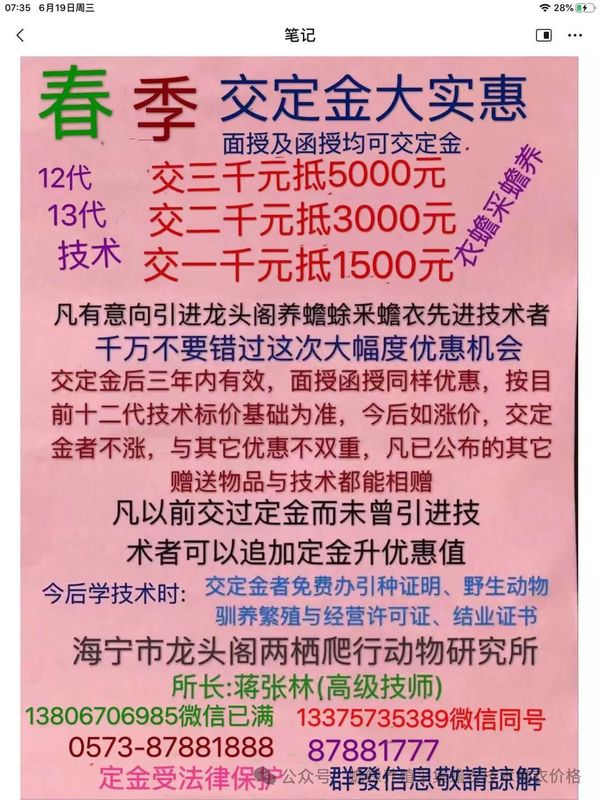 凡有意向引进龙头阁养蟾蜍采蟾衣先进技术者,不要错过“蟾蜍之春”这次大幅度优惠机会!