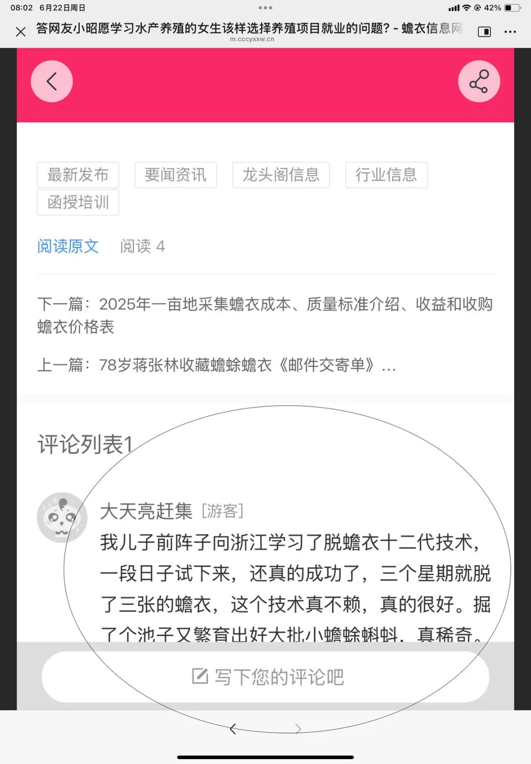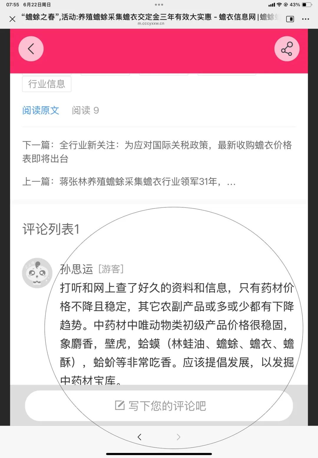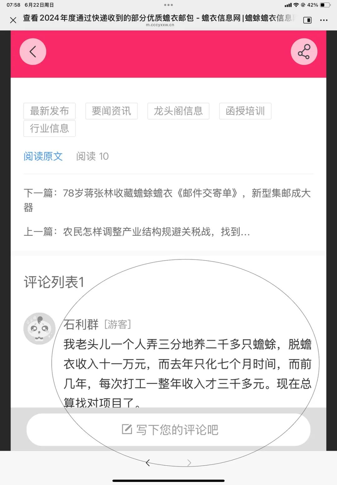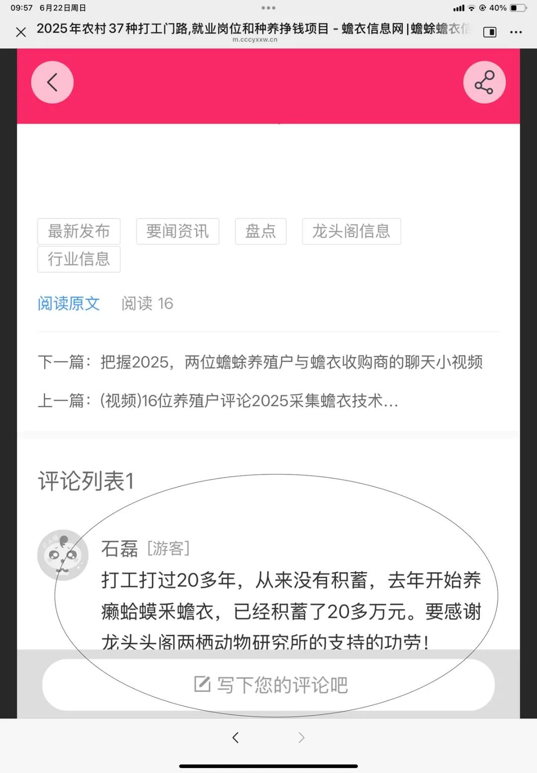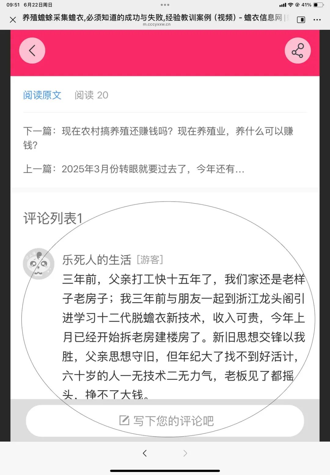 继十三项采集蟾衣知识产权之后,又一个养殖模式已成为养殖蟾蜍增加收入热点新话题:养殖模式一换,胜过一项新技术,他养一百只蟾蜍竟超过别人养一千只蟾蜍采集蟾衣挣钱?截止2025年6月末,今年销售和收购新蟾衣购销已经开始两个月了,有三个热点话题养殖户反响强烈:2025年高关税下,养殖模式、采集蟾衣技术,对蟾衣品质、蟾衣规格、蟾衣价格和养殖户增收有改天换地一般的影响。为此,感谢养殖户在此话题下贡献的留言,现选取部分留言截图以飨读者: