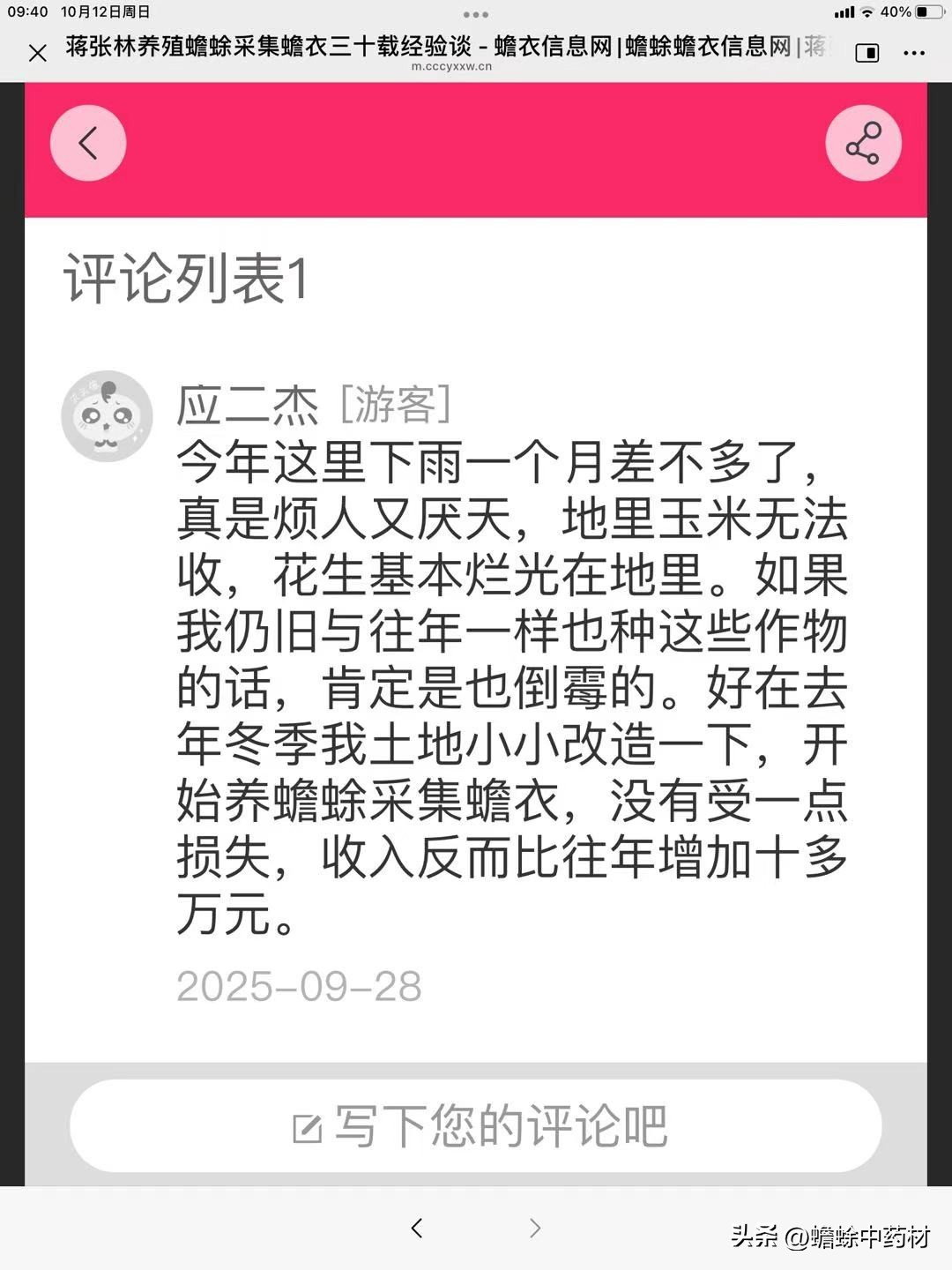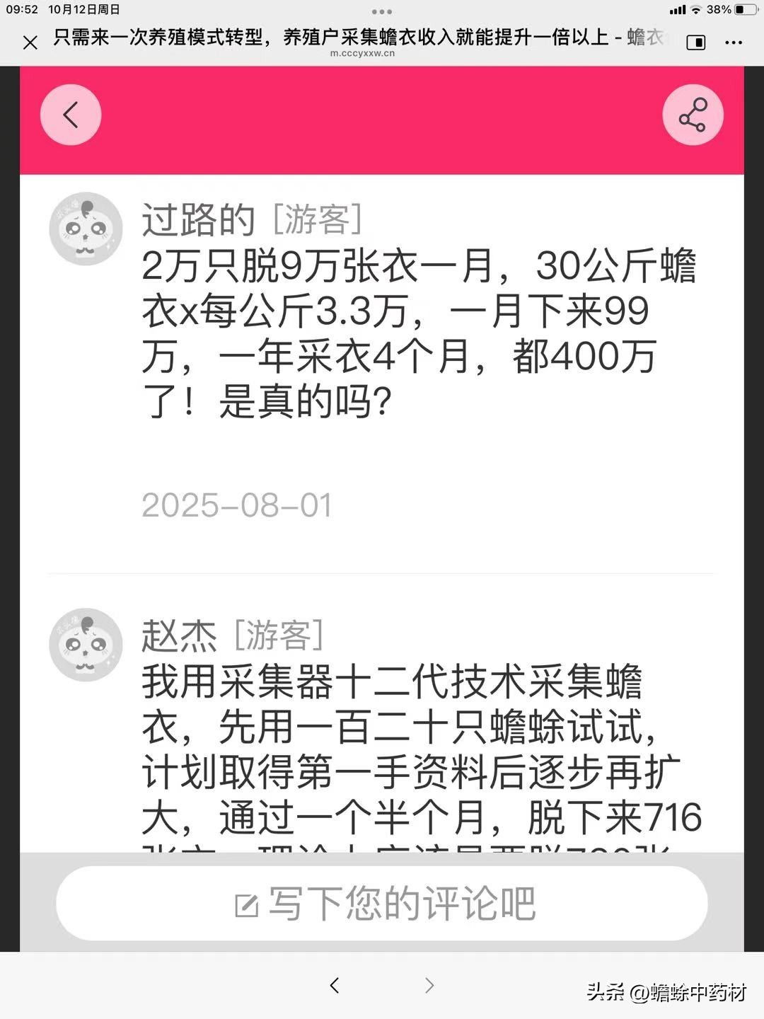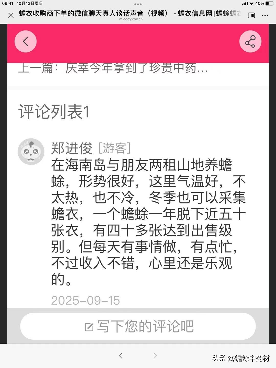 2025下半年24家养殖蟾蜍采集蟾衣和收购收入议题部分评论留言
